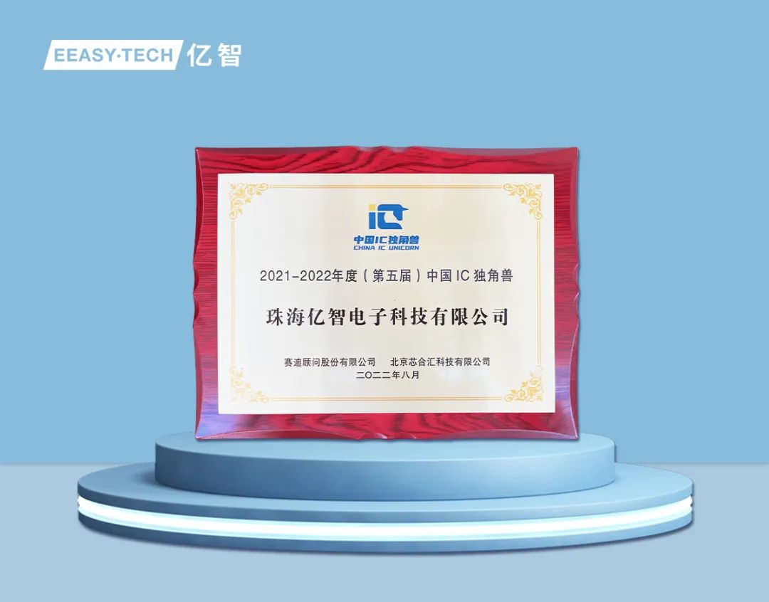 2022年8月19日,第五届中国IC独角兽企业颁奖典礼在南京世界半导体大会期间的中国IC独角兽论坛上举行,亿智电子获颁发“2021-2022年度(第五届)中国IC独角兽”称号” 。