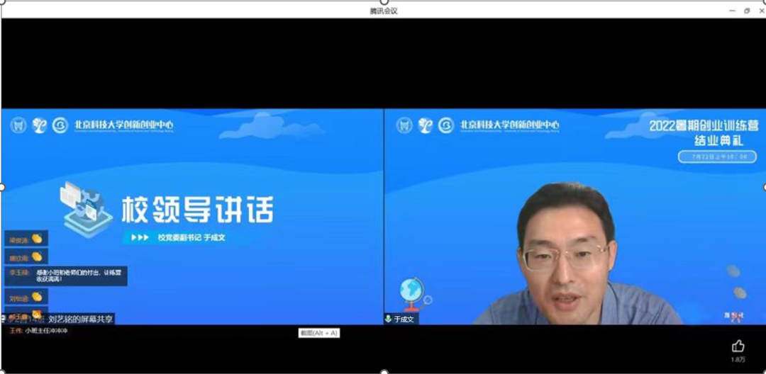 2022年7月22日上午10:00,博88 2022年夏季创业训练营结业典礼如期在线上通过腾讯会议举行。