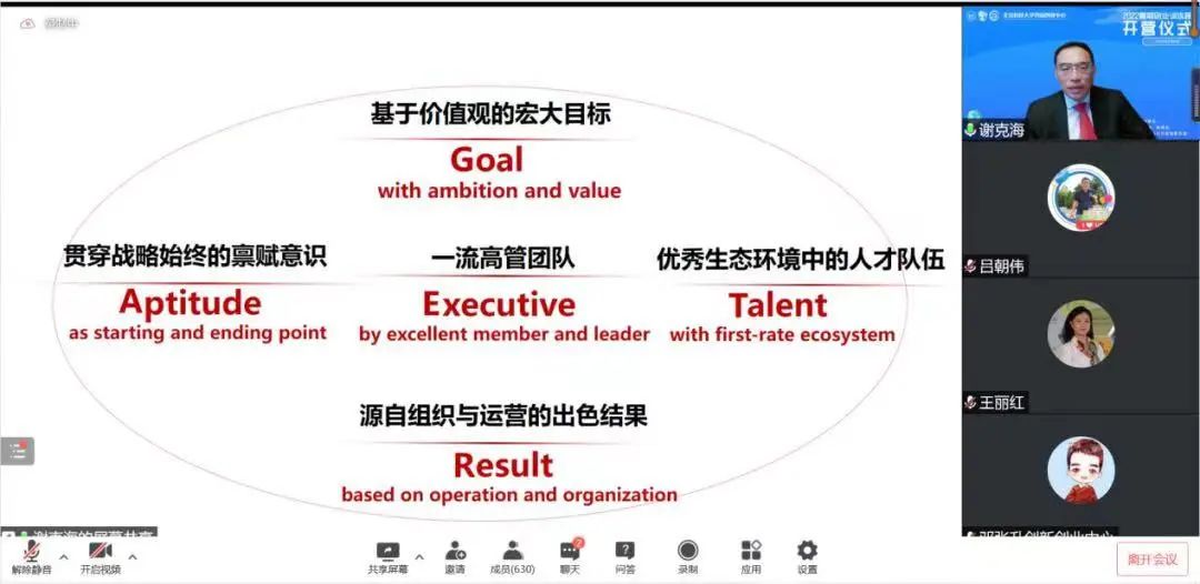 北科大82级校友、北大方正集团总裁谢克海教授作为今年训练营首位重磅嘉宾,从“为什么要创业”为宏观出发点,深入浅出地分析了企业成功的关键要素Great模型,为同学们创新创业正确的价值观塑造、创新创业系统思考奠定了扎实的基础。