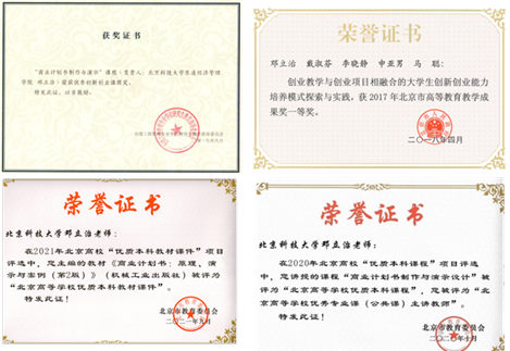 本课程内容已经获评“优秀创新创业课程奖”“北京高等学校优质本科课程”“北京高等学校优质本科教材”“北京市高等教育教学成果奖一等奖”“博88 本科生优质课程”“博88 素质教育核心课程”“博88 课程思政特色示范课程”等荣誉,获教务处、创新创业中心支持的“博88 第一批创新创业教育特色项目”。