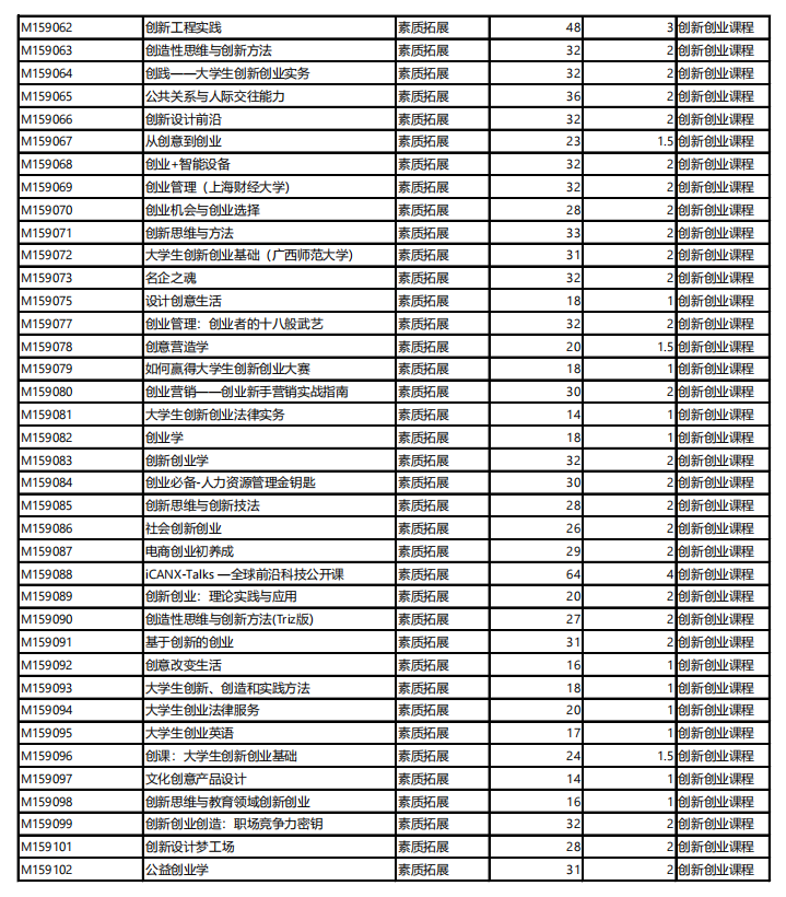 请同学们登录我校选课系统进行选课(//jwgl.betb88.org/),可通过“课堂要求”的说明提前观看课程视频了解课程信息(不计入课程学习进度),9月22日晚20:00选课截止。人文素质类、创新创业类在线公选课程位于素质拓展课类选课栏下,居于页面偏下位置,课程编号以M开头,课程类别为人文素质类(M289038-M289081)、创新创业类课程(M159062-M159102)。