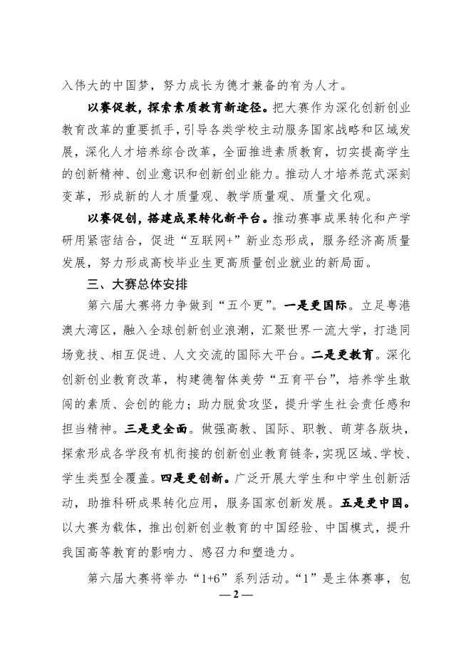 教育部关于举办第六届中国国际“互联网+”大学生创新创业大赛的通知