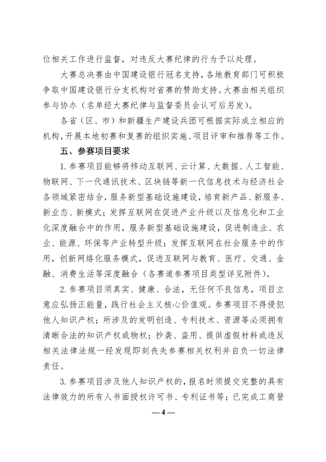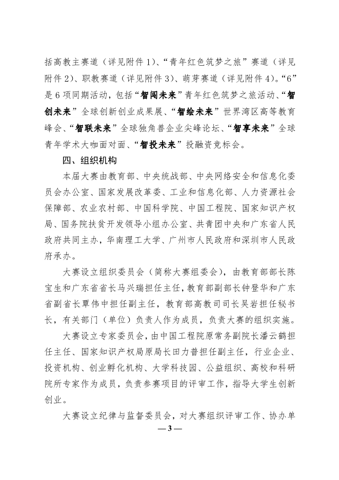 教育部关于举办第六届中国国际“互联网”大学生创新创业大赛的通知2020-6-3