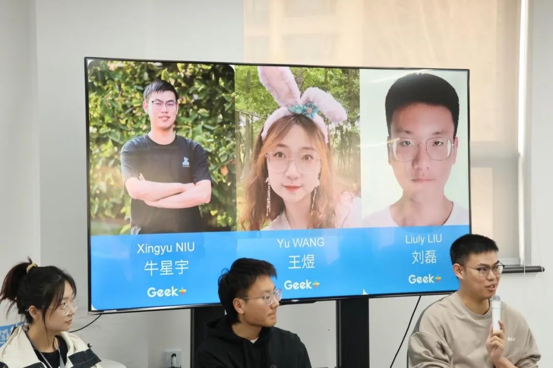 座谈环节中,极智嘉产品高级总监汪旭介绍了公司和产品的基本情况,通过视频的方式让同学们了解了公司机器人工作的主要流程;随后,极智嘉公司校招负责人徐曼针对极智嘉公司的特点、学生的实习实践以及就业情况等内容与同学们进行了详细地交流。