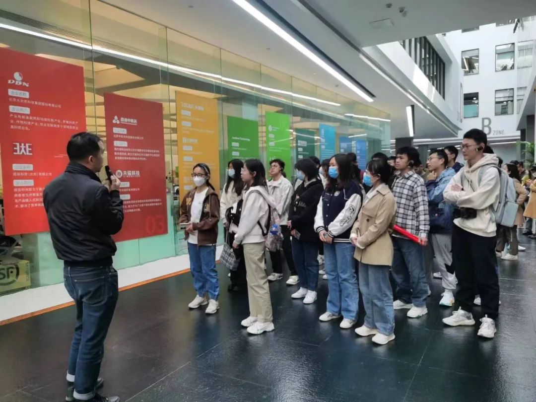 抵达目的地后,园区负责人朱鹏涛老师从食、住、行、娱、教五个方面为大家介绍了东升科技园的基本情况,及为入园企业提供应用场景的园区服务职能,并组织大家依次参观了上述五大科技创新名企。