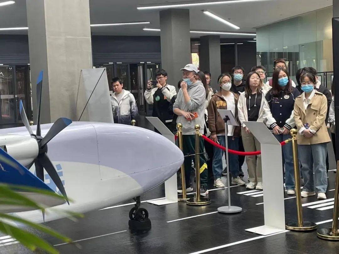 在白鲸航线,企业负责人从机型参数、运营场景两大方面,逐步介绍其经济型货运无人机因减少八大系统的成本优势,引发同学们极大的兴趣,在后续提问环节中,同学们都十分的积极。