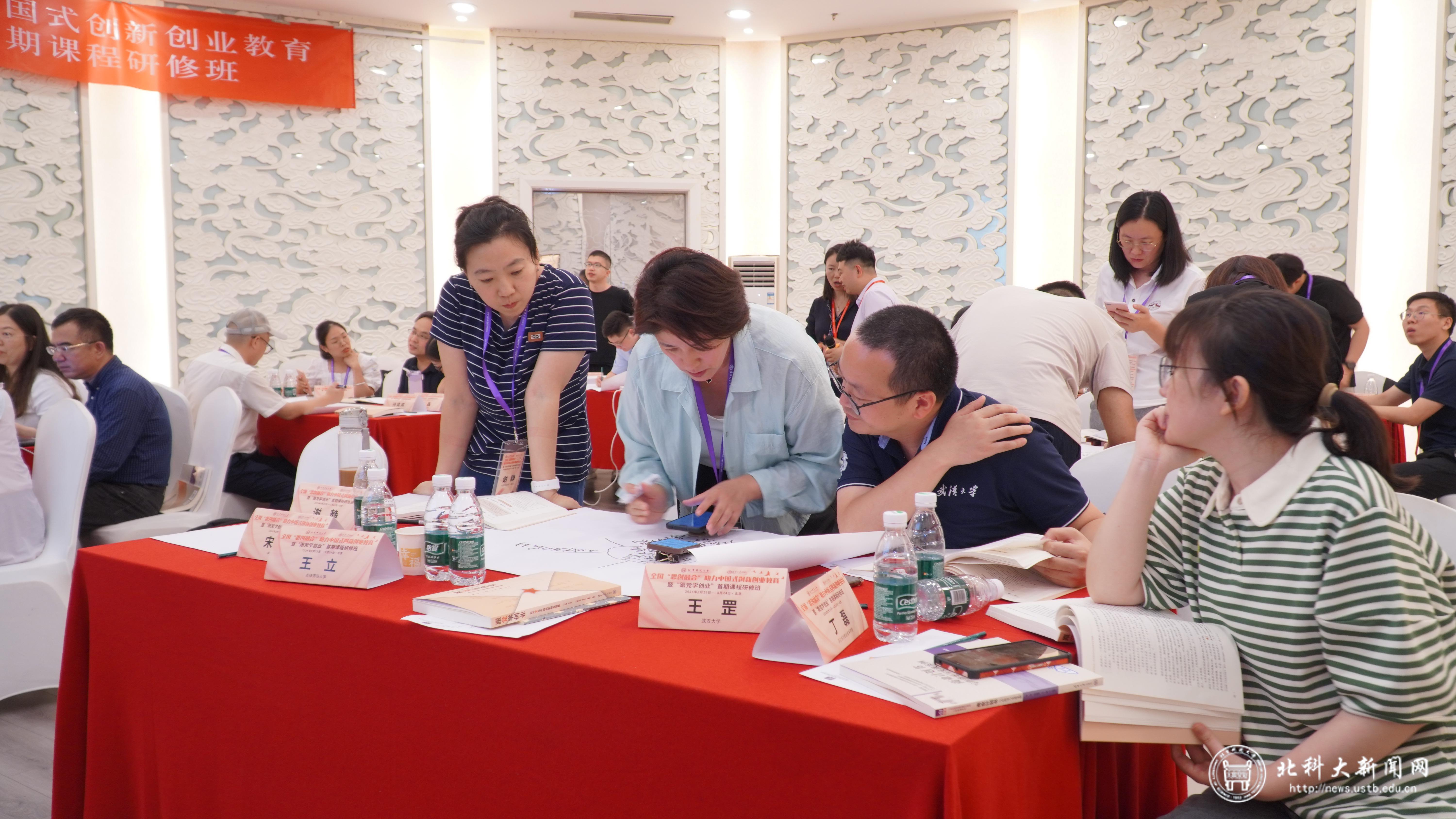 研修班围绕“思创融合”这一核心理念,邓张升以教学工作坊的形式带领参训学员深入理解“跟党学创业”课程逻辑框架。参训教师以小组为单位各自选取不同时期的党史,绘制出党史“创业年轮图”,逐一进行现场展示,现场气氛活跃,引发老师们对党史的全新认识。