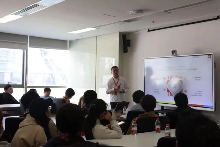 下午14:30分,同学们进入会议室开展了座谈会,入职京东5年韩春涛学长与同学们进行了亲切的交流。