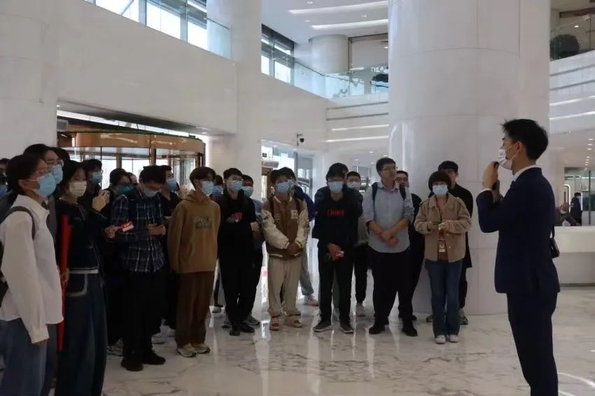3月6日中午,参加此次名企行的同学们在校门口的大巴上集合完毕后,准时前往了通州区科创十一街的京东集团总部;随后,师生们顺利到达京东集团总部,并在老师和京东集团校企结合部门的负责人唐菲的带领下进行了参观。