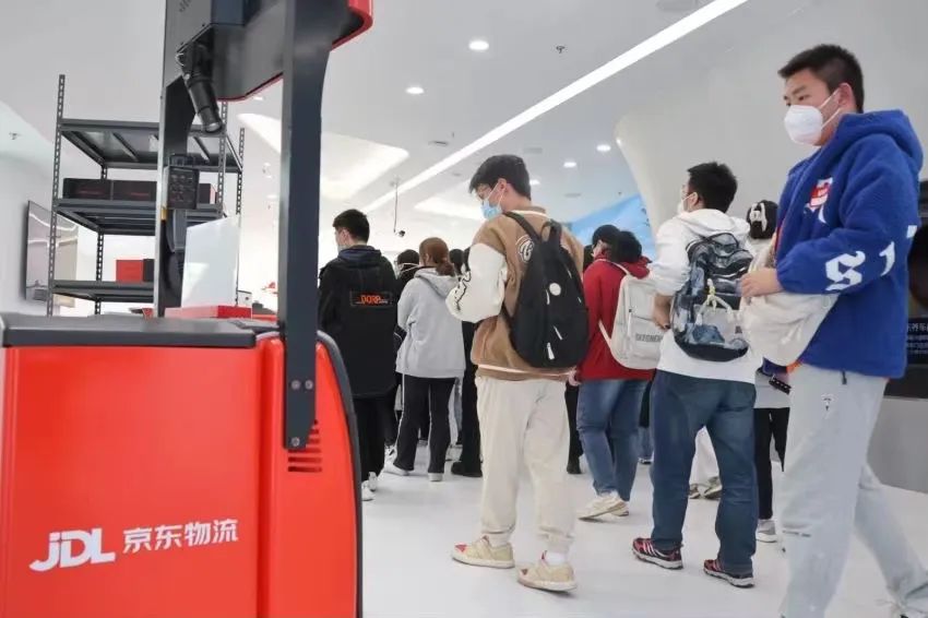 接着同学们走进了京东集团的无人设备展区,作为从2007年开始自建物流系统的创新企业,京东集团无论是在科技研发领域还是物流和供应链管理,又或是无人机器人创新方面都取得了不菲成果。